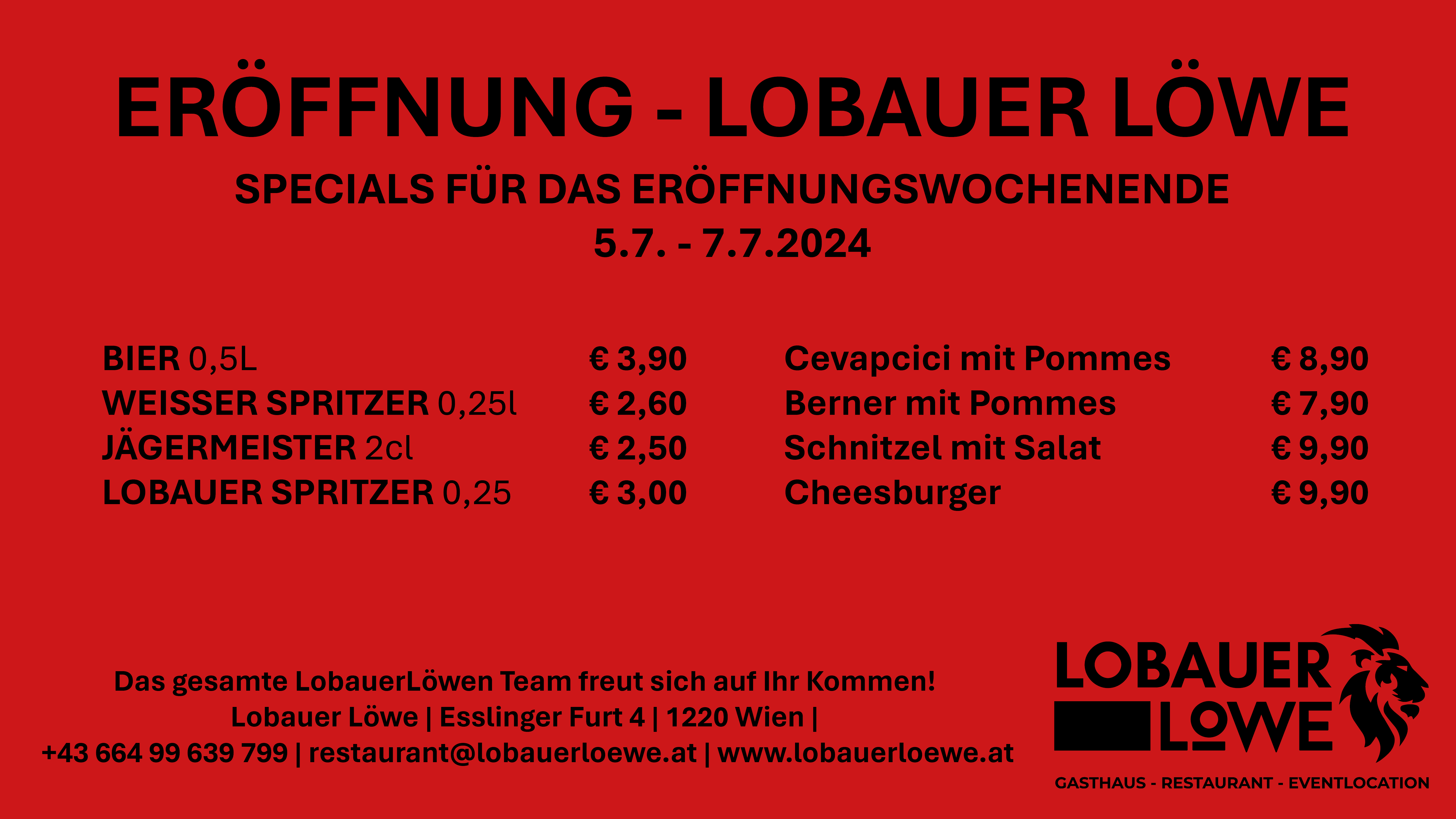 Freitag: 05.07.2024 - ab 15:00 geöffnet